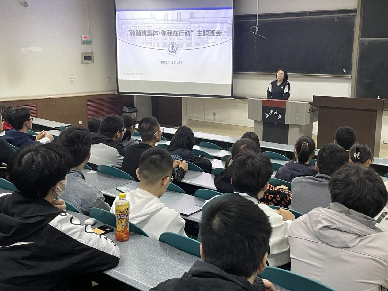 为引导学生提高人际交往与沟通能力,助力学生度过充实精彩的大学生活,营造温馨和谐的校园氛围。112日,我院2022级数学类专业一班和二班在WT1202教室召开了“和谐班集体·你我在行动”主题班会。学院党委副书记屈颖出席本次班会,会议由2022级本科生辅导员杨雪菲主持。