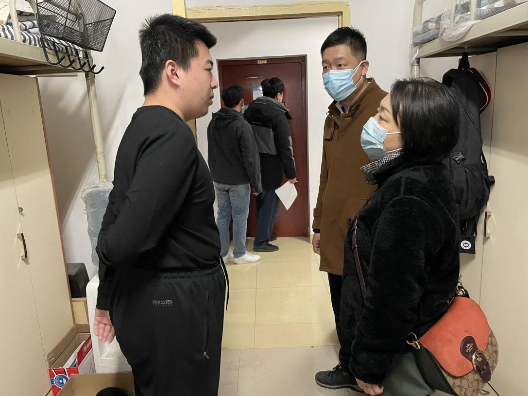 为及时了解新学期返校后学生的思想动态和学习生活状态,进一步夯实三全育人合力。2月21日上午,beat365体育官方网站党委副书记屈颖,思政班主任梁振涛、王成,本科生辅导员刘延海、杨雪菲在渭水校区联合走访了本科生宿舍。